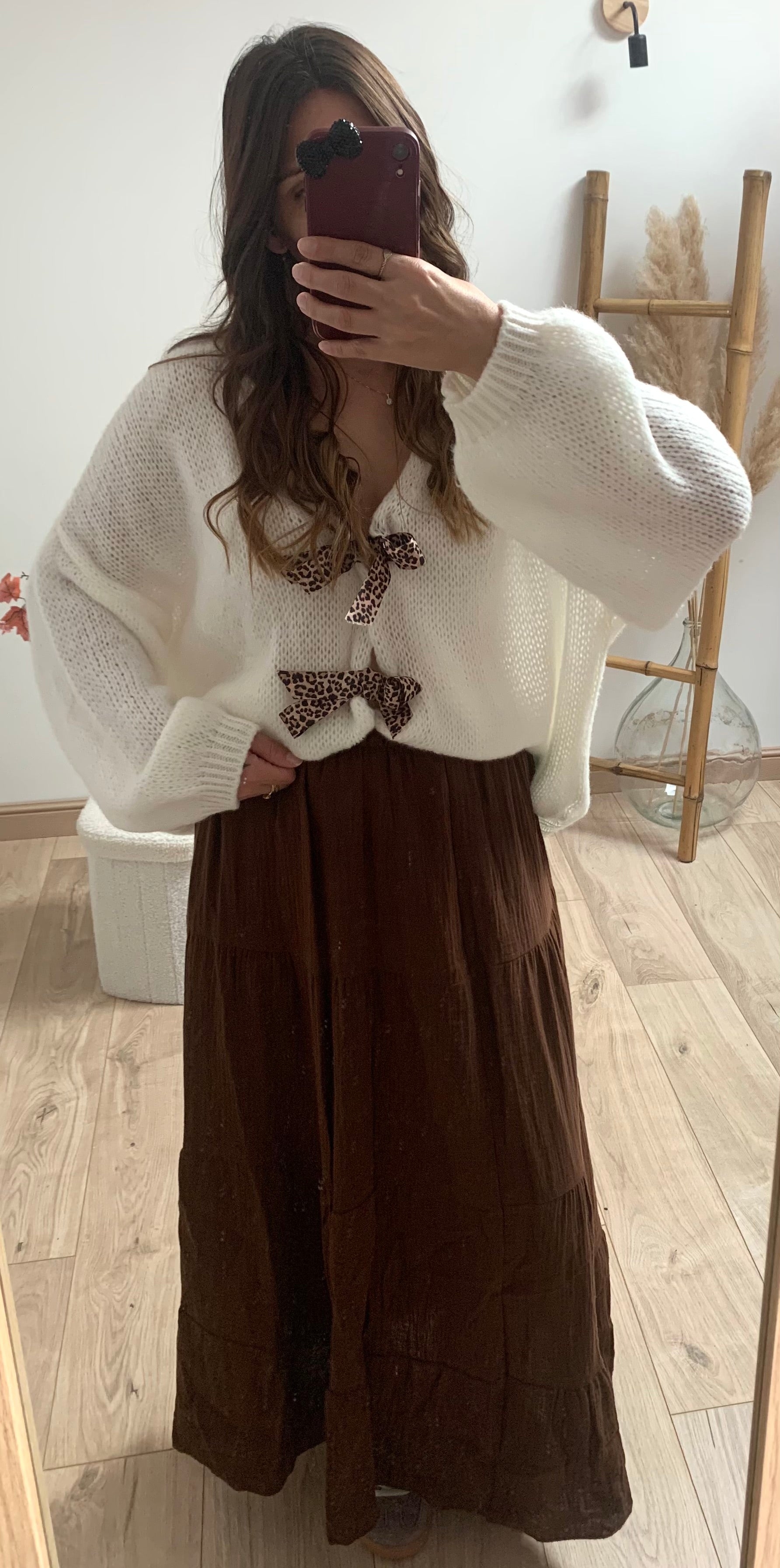 Ce cardigan en maille avec ses jolis nœuds léopard réglable pour lui apporter ce détails qui vous offrira une tenue cosy et stylée, parfaite pour les journées fraîches.
