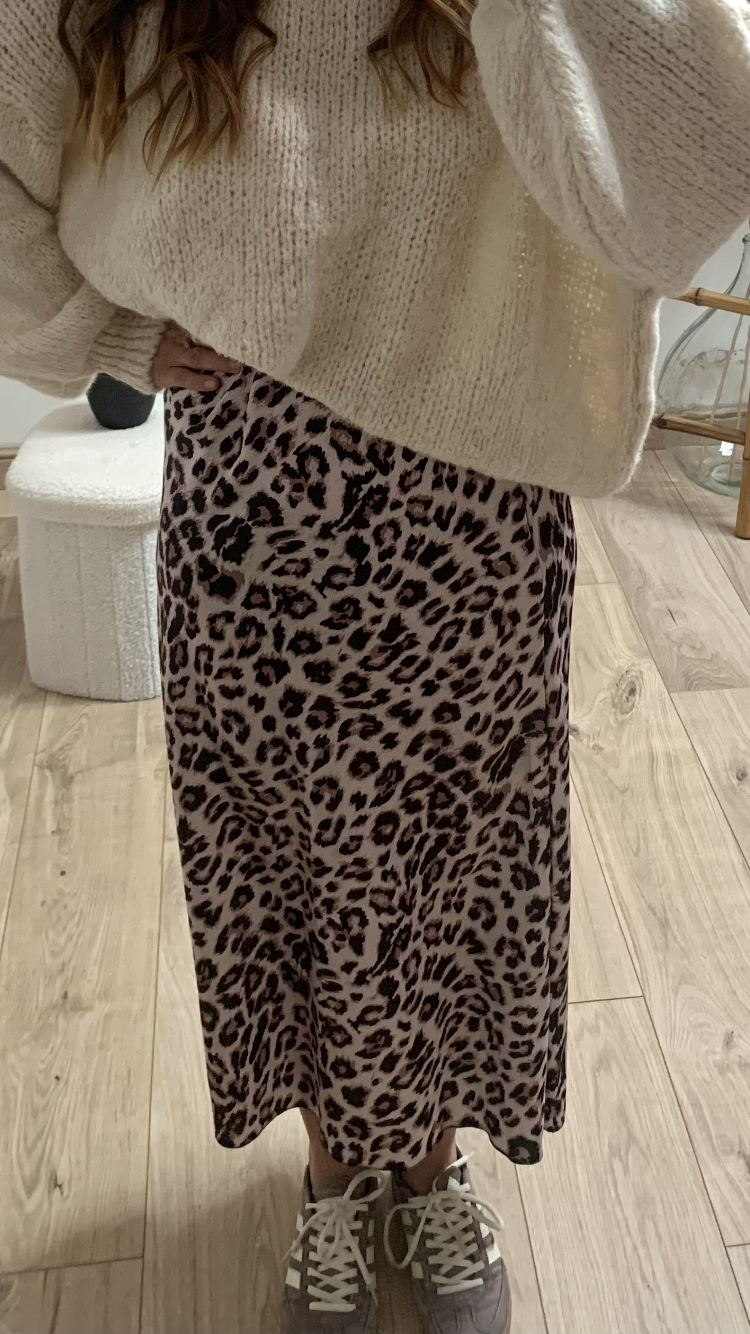 Cette jupe longue satinée imprimée allie fluidité et élégance. Sa matière satinée capte souligne le mouvement naturel de la silhouette. L’imprimé léopard apporte du caractère et dynamise le style, parfait pour moderniser une tenue classique. Sa coupe légèrement évasée assure confort et féminité, tandis que sa taille haute structure la ligne et allonge la silhouette.
