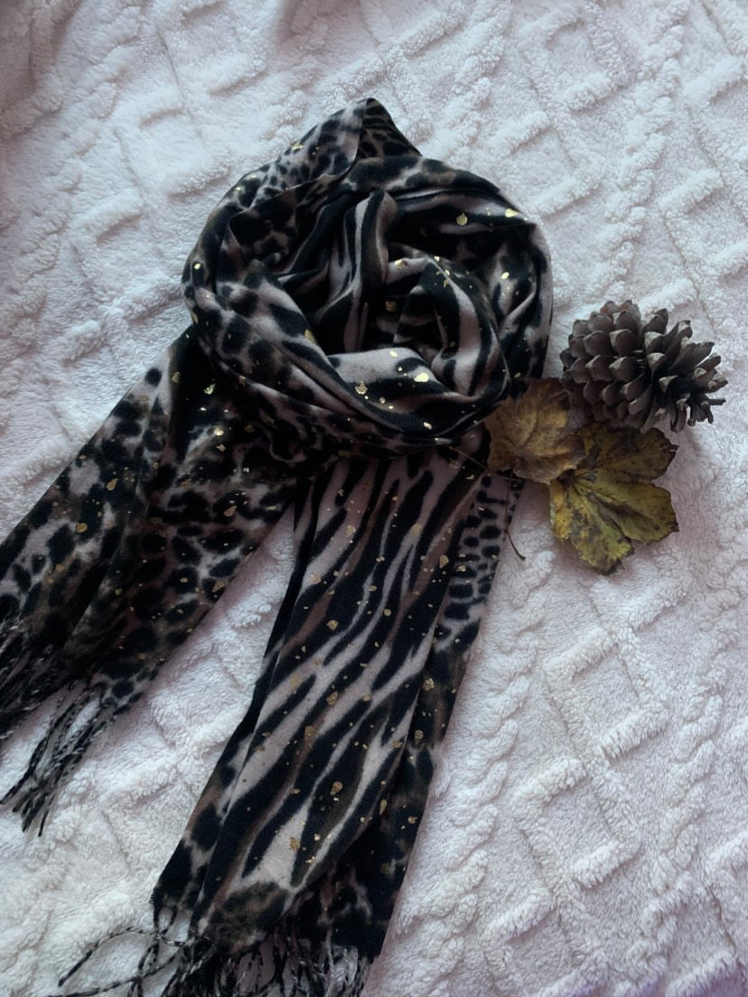 L’écharpe Leonne imprimée léopard est l’accessoire idéal pour réchauffer et réveiller une tenue basique. On craque pour son motif animalier ornée de dorures avec ses franges à l’extrémité . Douce et moelleuse elle pourra ce porter avec son simple côté imprimée ou bien de son côté imprimée doré. Parfaite pour un look chic avec une touche de caractère.